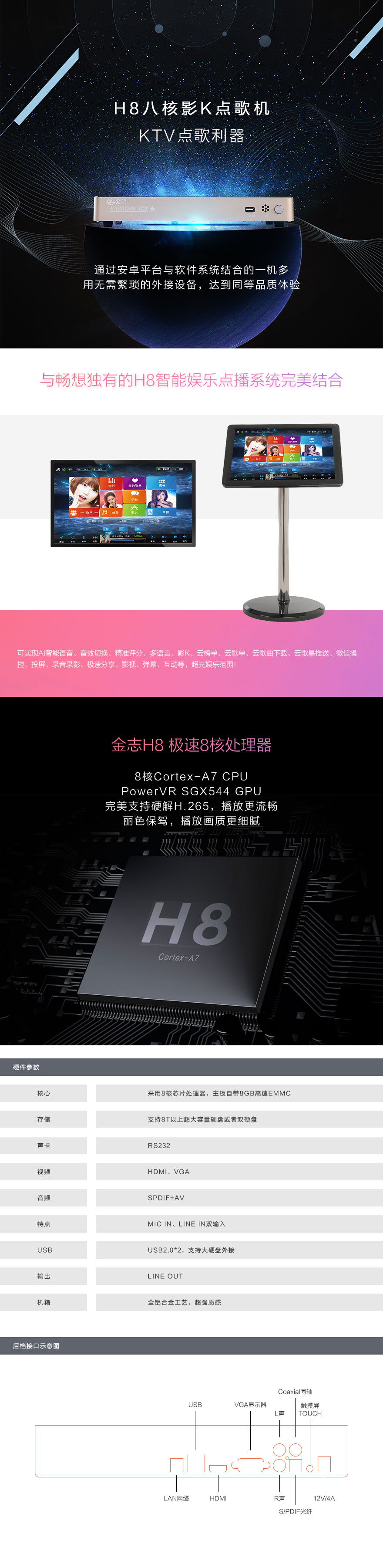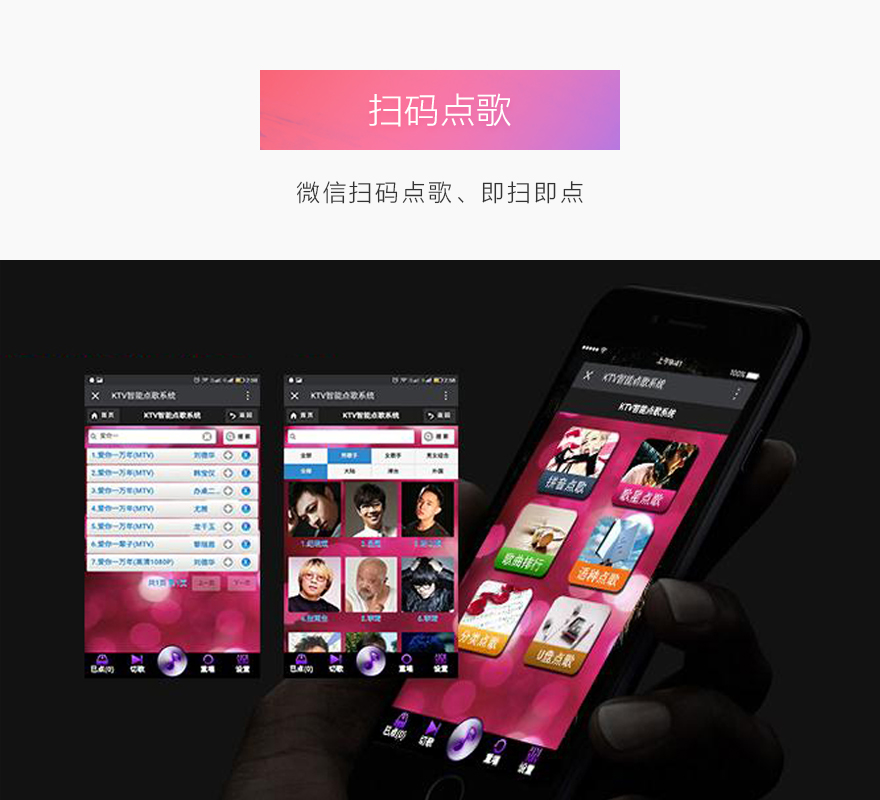 运用触摸屏点选歌曲、电视、电影视频内容播放,是专业KTV、会所、家庭等的最佳选择K歌/观影/看直播