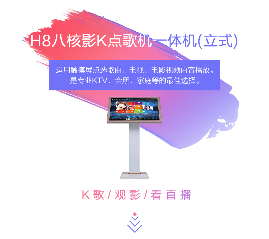 运用触摸屏点选歌曲、电视、电影视频内容播放,是专业KTV、会所、家庭等的最佳选择K歌/观影/看直播